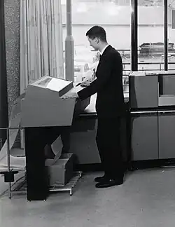 The IBM 1443 Printer (sometimes referred to as the 1443 Flying Type Bar Printer[1]) is an obsolete computer line printer used in the punched card era. It was offered in three models: Models 1, 2 and N1; the last two could print up to 240 lines per minute (LPM) with a full character set.[2][3][4]