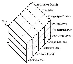 The system-level design starts once the “raw material” (domain) objects have been collected. This develops the design context, ensures connectivity to legacy systems, and identifies the applications that must be built to satisfy the requirements. Static, dynamic, behavioral, and rationale models are built for the objects at the system level. These specifications become the requirements on the application level – the next level of design. The application level design identifies and specifies all of the software components (partitions) needed in the design. Static models, dynamic models, behavioral models, and the rationale component are built for the objects at the application level. These specifications become the requirements on the next level of design – the low-level design. Static Models, Dynamic Models, Behavioral Models, and the design rationale component are built for the low-level design objects. Sub-layers may be built within each layer to reduce complexity.[1]