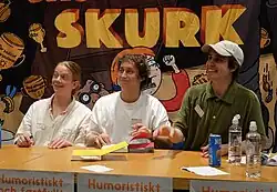 ![]() I Just Want To Be Cool signing their book Skurkarnas skurk at the Gothenburg Book Fair in 2023. (From left: Joel Adolphson, Emil Beer, Victor Beer) | ||||||||||