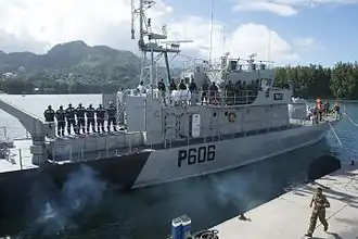 - ^ "A milestone in our relations"- Indian Navy hands over patrol ship to Seychelles Coast Guard". Ministry of Foreign Affairs (Seychelles). 11 October 2014. Archived from the original on 15 February 2017. Retrieved 15 February 2017.