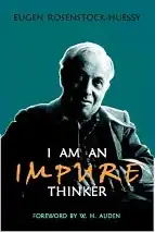 I Am an Impure Thinker is a book by Eugen Rosenstock-Huessy (1888–1973), German social philosopher and is an English-language introduction to Rosenstock-Huessy's German-language book, Soziologie. It is a collection of essays, which represents an accessible introduction to Rosenstock-Huessy's thought. The "impure thinker" title reflects the author's escape from the bounds set by academic tradition, his belief that thought must be accompanied by passionate convictions and engagement, and that sterile intellect is a disease. While apparently unrelated, the essays nevertheless have an underlying unity, which runs through his discussion of the concepts of William James, the Gospels, the Egyptian symbol of Ka, and other uncommon sources. Together the essays contribute to the discovery of a post-theological language. They answer Dietrich Bonhoeffer's question: "How can we speak of God to modern man who 'has come of age?'"[1] It has been recognized as a summary of Rosenstock-Huessy's insights into Western culture by such thinkers as W. H. Auden, Dietrich Bonhoeffer, Martin E. Marty, and Harold J. Berman.