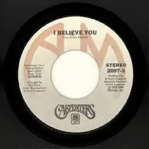 In June 1981 the album Made in America—which included "I Believe You"—was finally released. The potential success "I Believe You" might have had it been issued in conjunction with an LP was underscored when the album's eventual lead single, "Touch Me When We're Dancing", became the first Carpenters hit to reach the Hot 100's Top 20 as well as number 1 on the Billboard Adult Contemporary chart since "There's a Kind of Hush" did the same in early 1976.