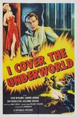 I Cover the Underworld is a 1955 American crime film directed by R. G. Springsteen and written by John K. Butler. The film stars Sean McClory, Joanne Jordan, Ray Middleton, Jaclynne Greene, Lee Van Cleef and James Griffith. The film was released on May 19, 1955, by Republic Pictures.[1][2][3]