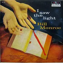 I Saw the Light was released by Decca on August 11, 1958 — less than two months after Monroe's debut, Knee Deep in Blue Grass.[6] The album's title was taken from its opening track, "I Saw the Light", which was written and recorded by Hank Williams in the 1940s and had recently been included on a posthumous album of the same name.[3] The album was credited solely to "Bill Monroe" and did not list any of the Blue Grass Boys or other performers on the sleeve.[6] As had happened with Knee Deep in Blue Grass, Decca also issued a four-track extended play on the same day as the album, which featured the songs "Life's Railway to Heaven" (written by Charles Davis Tillman), "Precious Memories" (a hymn credited to J. B. F. Wright), "I've Found a Hiding Place" and "Jesus Hold My Hand" (both written by Albert E. Brumley).[7] "Precious Memories" was issued as the only single from the album almost two years later on June 20, 1960, backed with "Jesus Hold My Hand".[8]