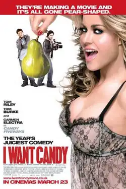 I Want Candy is a 2007 sex comedy film directed by Stephen Surjik and starring Tom Riley, Tom Burke and Carmen Electra. It revolves around a group of university students who go in search of funding for their feature film and end up having to rewrite it and make it into a pornographic film.