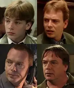 Ian Beale is a fictional character from the BBC soap opera EastEnders, played by Adam Woodyatt. He is one of four remaining original characters, the others being his mother, Kathy Beale (Gillian Taylforth), his long standing best friend and ex-wife, Sharon Watts (Letitia Dean) and Queen Vic barmaid, Tracey (Jane Slaughter). The character appeared in his 2000th episode in the show on 26 March 2007,[1] and his 3,000th on 27 May 2016.[2] Woodyatt left EastEnders on 22 January 2021.[3][4] He made guest appearances on 12 December 2022 and 22 June 2023, prior to a full-time return on 22 August of that year. Ian is the longest-serving regular EastEnders character, and second overall, behind only Tracey.