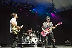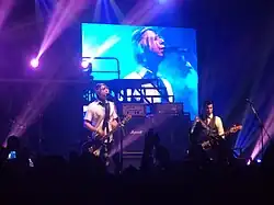 In early 2014, the group began working on their next album, posting studio updates on their YouTube page.[81] The single "Pop 101", featuring Anami Vice, was released on July 29, 2014.[82] The song reached No. 27 on the Canadian Hot 100.[23] The group toured in Australia and New Zealand in the fall of 2014.[83] On October 30, they performed a new song, titled "Here's to the Zeros", in the first show of the tour. It came out as a single on December 25, 2014,[84] in Canada and the United States, with an international release on December 29, 2014.[85] The song peaked at No. 59 on the Canadian Hot 100 and was nominated at the 2015 MuchMusic Video Awards for Fan Fave Video.[23][86] On May 26, 2015, Marianas Trench released an EP called Something Old / Something New, which included the two singles as well as two previously unreleased tracks.[87] The group subsequently toured across North America in support of the EP.[88]