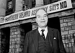 From 1982, Conservative Party policy began to move towards a more flexible position on Northern Ireland. In November 1985, Gow was persuaded by the speeches of his cousin Nicholas Budgen to resign as Minister of State in HM Treasury over the signing of the Anglo-Irish Agreement.[15][16] Despite his disagreement with government policy, he used his resignation speech to underline his personal devotion to Thatcher, describing her as "the finest chief, the most resolute leader, the kindest friend that any member of this House could hope to serve."[17] The Anglo-Irish Agreement would ultimately lead to devolved government for Northern Ireland, power sharing in the province and engagement with the Republic. After his resignation from the government, Gow became chairman of the parliamentary Conservative backbench committee on Northern Ireland. He was a leading opponent of any compromise with republicans and his tactics in this regard caused concern to the Northern Ireland Secretary Jim Prior and other MPs. According to The Guardian: "He [Gow] co-ordinated the Tory backbench opposition to Mr Prior's Northern Ireland Assembly bill in the early 1980s. His activities were said to have startled other Tory MPs and led to a complaint from an enraged Mr Prior to Mrs Thatcher."[18]