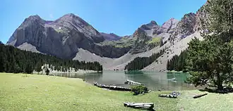 Ibón de Plan or Basa de la Mora is a lake in the Province of Huesca, northeastern Spain. It is not connected to any specific river, since the water that fills it originates in the snow and the ice accumulated in such altitudes. It lies at an elevation of 1,910 metres (6,270 ft) and has been described as a "conifer-flecked cirque".[1]