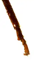 The larva lives it in its first instars as an endoparasite, and later exits the host and lives on the remaining host tissues. The primary instar is polypodeiform with paired appendages on segments 1–12, and in the second to fourth instars, the appendages are lost. Until the terminal instar, the remaining cauda is gradually decreased.[4]