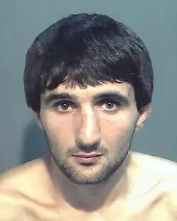 His father said in an interview for Russia Today that his son was a "very calm" person who would never hurt anyone.[7] Todashev's former MMA training partner, however, described him as a gifted athlete but also a "hothead".[8] In 2010, the Boston Police Department detained Todashev for a violent road rage incident in Downtown Crossing; the police report states that the officers "witnessed several people struggling to restrain a white male, later determined to be the subject, Ibragim Todashev. Officers heard Todashev yell, 'You say something about my mother, I will kill you!' Officers struggled to physically restrain and handcuff Todashev."[9] On May 4, 2013, shortly before his death, he was also briefly arrested by the Orange County Sheriff's Office in Orange County, Florida, after he got into a fight with two strangers during a dispute over a parking space at an outlet mall, knocking one of them unconscious and then leaving the scene (the man, who was hospitalized with serious head injuries but did not press charges,[2] later said he was shocked "how accurate and quick his punches were" and "thought he was wearing brass knuckles, but it was just his fist").[8] The responding sheriff's deputy chased down Todashev's car, ordered him out at gunpoint and arrested him; the affidavit states that "Todashev said he was only fighting to protect his knee because he had surgery in March."[10]