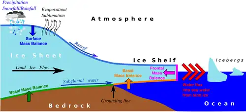 Ice sheets interact with the surrounding atmosphere, ocean and sub-glacial earth.[15] All of these interactive components need to be included to be able to have a comprehensive ice-sheet model.[15]