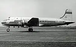 In the same year, the comfort and performance of domestic flights in Iceland was improved with the introduction of the Douglas DC-3. A total of six were purchased, which remained in service with the airline until 1972.[16] Until the late 1960s, Flugfélag concentrated mostly on domestic service, but it also continued operating internationally; in 1948, the Douglas DC-4 was introduced on international routes, and in 1957 two new Vickers 759 Viscounts were acquired, the first turboprop airliners to be operated by an Icelandic airline. In the 1950s, Flugfélag began to use Icelandair branding for flights beyond Iceland.[12]