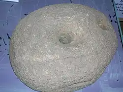 Different types of bread were considered a luxury among common people, although they were not uncommon. Corn bought from the merchant would be ground using a quern-stone (called kvarnarsteinn in Icelandic) and supplemented with dried dulse (seaweed) and lichens. Sometimes it was boiled in milk and served as a thin porridge. The porridge could be mixed with skyr to form skyrhræringur. The most common type of bread was a pot bread called rúgbrauð, a dark and dense rye bread, reminiscent of the German pumpernickel and the Danish rugbrød, only moister. This could also be baked by burying the dough in special wooden casks in the ground close to a hot spring and picking it up the next day. Bread baked in this manner has a slightly sulphuric taste. Dried fish with butter was served with all meals of the day, serving the same purpose as the "daily bread" in Europe.