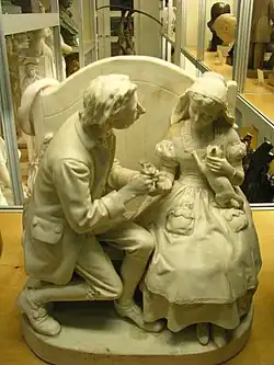 Later, both men are invited to a harvest festival party at Van Tassel's where Ichabod's social skills far outshine Brom's. After the party breaks up, Ichabod remains behind for "a tête-à-tête with the heiress", where it is supposed that he makes a proposal of marriage to Katrina but, according to the narrator, "Something, however ... must have gone wrong, for he certainly sallied forth, after no very great interval, with an air quite desolate and chapfallen", meaning that his proposal is refused, allegedly because her sole purpose in courting him was either to test or to increase Brom's desire for her. Therefore, Ichabod leaves the house "with the air of one who had been sacking a hen-roost, rather than a fair lady's heart."