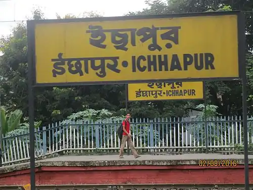 Ichhapur railway station is the railway station in the town of Ichhapur. It serves the local areas of Ichhapur in North 24 Parganas district, West Bengal, India.