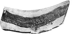 Ichthyerpeton is an extinct genus of stegocephalian ("tetrapod") from the Pennsylvanian of Ireland. It was originally described by E.P. Wright and Thomas Henry Huxley in 1866, based on an articulated partial skeleton from the Jarrow coal seam in County Kilkenny. It was redescribed in 2021 by Aodhán Ó Gogáin and Patrick N. Wyse Jackson, who used X-ray tomography to peer through the dense coating of scales which obscures many bones. The body was very elongated, with tall diplospondylous vertebrae similar to those of embolomeres. The fossil includes a stout hindlimb with distinct digits and a proportionally short tibia. Though previously considered an embolomere, colosteid, or long-bodied temnospondyl, Ichthyerpeton has a unique combination of features which prevents an unambiguous placement among these tetrapod groups.[1]