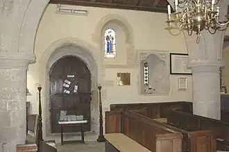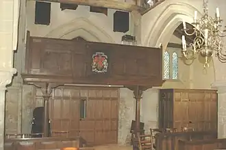 In the nave some of the seats are 16th-century and there is a west gallery fronted with 17th-century panelling.[3] The pulpit and its tester are also 17th-century.[3][4]