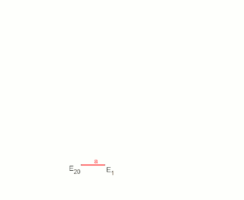These 10 symmetries can be seen in 16 distinct symmetries on the icosagon, a larger number because the lines of reflections can either pass through vertices or edges. John Conway labels these by a letter and group order.[3] Full symmetry of the regular form is r40 and no symmetry is labeled a1. The dihedral symmetries are divided depending on whether they pass through vertices (d for diagonal) or edges (p for perpendiculars), and i when reflection lines path through both edges and vertices. Cyclic symmetries in the middle column are labeled as g for their central gyration orders.