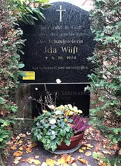 On 4 October 1958 Ida Wüst died of a stroke, following a severe bout of pneumonia, aged 73. She was buried at the Evangelical Lutheran parish church cemetery in Groß Glienicke, Brandenburg.[4]