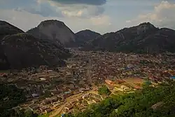 The Idanre Hill is well known for its scenic landscape.[2][3] Its wide variety of cultural sites like 'Owa's Palace', shrines, The Old Court, Belfry, Agboogun footprint, thunder water (Omi Apaara) and burial grounds have since brought the location fame and the nation's nomination for the UNESCO World Heritage Site shortlist.[4][5] It is situated 3000 ft (914.4 meters) above sea level and houses a unique ecosystem upon which the cultural landscape has Integrated.[6] It also has diverse and variegated eco-systems of flora and fauna. Oke Idanre contains very important bio-physical and land form features whose interaction with the physical features created an enduring cultural landscape within the setting.[7]