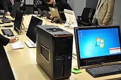 In October 2009, three IdeaCentre desktops were announced: the B500, K300, and H230.[18] The B500 desktop was equipped with an Intel Core 2 Quad processor, up to 8 GB of DDR3 RAM, up to 1TB hard disk drive, a 23” full HD screen, and JBL integrated speakers.[18] The desktop also included a 4-in-1 remote control that could be used as a motion controller for games, a VoIP handset, an air mouse, and a media remote.[18] A feature that was described as unique by Lenovo was the CamSuite software, designed to keep users in the center of the web camera's focus area.[18]