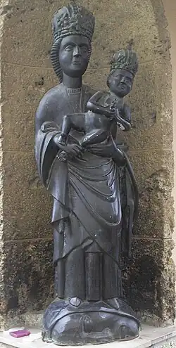 The opposition to the use of any icon or image to represent ideas of reverence or worship is called aniconism.[13] The destruction of images as icons of veneration is called iconoclasm,[14] and this has long been accompanied with violence between religious groups that forbid idol worship and those who have accepted icons, images and statues for veneration.[15][16] The definition of idolatry has been a contested topic within Abrahamic religions, with many Muslims and most Protestant Christians condemning the Catholic and Eastern Orthodox practice of venerating the Virgin Mary in many churches as a form of idolatry.[17][18]