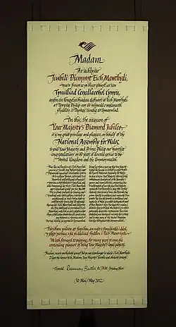 - ^ a b Young, Alan (12 June 1996). "Calligrapher wins acclaim at home and aboad [sic]. Even M.I.5 call in man of letters". Carmarthen Journal. p. 30. Retrieved 18 August 2025.