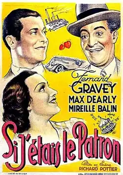 If I Were Boss (French: Si j'étais le patron) is a 1934 French comedy film directed by Richard Pottier and starring Fernand Gravey, Max Dearly and Mireille Balin.[1] [2] The film's sets were designed by the art director Jacques Krauss. The depiction of a struggling business has been regarded as a metaphor for the wider state of French industry at the height of the Great Depression. It was produced the same year as a number of financial scandals hit French firms.[3]