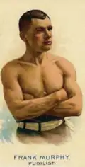 Weir, by most accounts, first took the World Featherweight Championship in a match with Frank Murphy on March 31, 1889, in Kouts, Indiana. The fight was billed as a world featherweight title, and went an astonishing eighty rounds. It decided the World Featherweight Championship, according to several sources, though it was ruled a draw by the referee.[20] With both combatants exhausted, little fighting took place in the last eighteen rounds. Upon examination, Murphy was found to have had a broken rib, and Weir had possibly received a minor jaw fracture. By most accounts, Weir was the more aggressive boxer in the bout.[21]