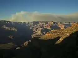 The Ikes Fire was a 2019 wildfire that burned 16,416 acres (6,643 ha) in Grand Canyon National Park and Kaibab National Forest in Arizona.[2] A lightning strike on July 25, 2019, was determined to be the cause.[3] The Ikes Fire was also being utilized to fulfill its natural role within a fire-dependent ecosystem (Fire ecology) while providing for point protection of identified sensitive natural and cultural resources. Resource objectives included reducing hazardous fuels, promoting forest regeneration, improving wildlife habitat, and restoring more open forest understory. These objectives will lead to a healthier and more resilient landscape.[4]