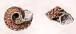 | Original drawing with two views of a shell of Ilanga bicarinata | |