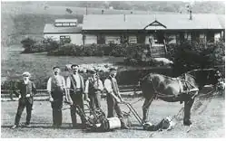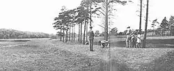 In October 1897 the committee negotiated with Myddleton Estate to rent 70 acres of pasture running along the north side of the River Wharfe. Work began on the new course in February 1898 and was completed by July of that year. The course was designed by Alister MacKenzie and Harry Colt and measures 6,262 yards.[3] The old links course on the moor was leased to an Ilkley Tradesmen's group and golf continued to be played there until the Moor Club was wound up in 1947. On 13 April 1907, Harry Vardon and noted golf architect James Braid played an exhibition match to mark the opening of the new clubhouse.[4] In 1921 the course was described as an "excellent links" course.[5] In 1970 many trees were planted around the course, changing its appearance.[4] The club has hosted the competition for the OCCA and West Riding Golf Trophies, the Yorkshire Ladies' Challenge Bowl in 1955 and the British Girls' Open Championship in 1969.[6][7][8][9]
