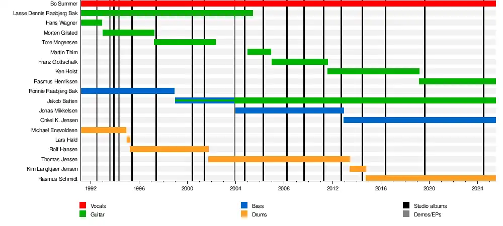 | Past members | Michael Enevoldsen Morten Gilsted Ronnie R. Bak Hans Wagner Lars Hald Rolf Rognvard-Hansen Tore Mogensen Lasse Bak Martin Thim Franz Gottschalk Ken Holst |