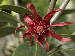 Illicium is a genus of flowering plants treated as part of the family Schisandraceae,[2] or alternately as the sole genus of the Illiciaceae.[3] It has a disjunct distribution, with most species native to subtropical and tropical areas of East and Southeast Asia and several in parts of North America, including the southeastern United States, Mexico, and the Caribbean.[4] General common names include star anise[5] and anisetree.[2] The genus name comes from the Latin illicere ("to allure").[5]