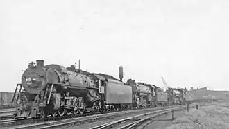 Between November 1942 and August 1943, a total of twenty locomotives were constructed by the Illinois Central Railroad (IC) at their own Paducah shops in Paducah, Kentucky.[5][6][7] Construction involved fabricating new boilers and shipping in one-piece cast frames from General Steel Castings in Granite City, Illinois.[6][8] The locomotives were also equipped with wheel tenders that held 20,000 US gallons (16,653 imp gal) of water and 26 tonnes (26,000 kg) of coal; a design feature that was rare on IC steam locomotives.[6] The 2600 class was a step-up design of the IC 2500 class 4-8-2's, and their design was identical to the Baldwin-built 2800 series locomotives on the Wabash Railroad, but the 2600's were larger and heavier.[6][8]