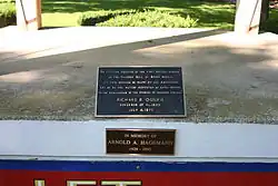 In 1966, an article was published about the bell's submersion and resurfacing at Geneva Lake.[1] The article interested the people of Mount Morris, Illinois, and they sent 12 members of their Fourth of July Committee to investigate the bell in Johnsburg.[1][3][4] The people of Mount Morris decided to purchase the bell; a committee was formed and obtained a loan from the Mount Morris VFW. The group also collected donations from local residents to purchase the bell for US$500.[1][2] By July 4, 1966, the Illinois Freedom Bell hung from the gazebo in its current location, and the two writers who first suggested bell ringing as an annual Independence Day ceremony, Eric Hatch and Eric Sloane were on hand for its dedication.[2]