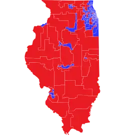 Abraham Lincoln began his political career in the Illinois House of Representatives as a member of the Whig party in 1834.[2] He served there until 1842. Although Republicans held the majority of seats in the Illinois House after 1860, in the next election it returned to the Democrats.[3] The Democratic Party-led legislature worked to frame a new state constitution that was ultimately rejected by voters[3] After the 1862 election, the Democratic-led Illinois House of Representatives passed resolutions denouncing the federal government's conduct of the war and urging an immediate armistice and peace convention, leading the Republican governor to suspend the legislature for the first time in the state's history.[3] In 1864, Republicans swept the state legislature and at the time of Lincoln's assassination at Ford's Theater, Illinois stood as a solidly Republican state.[3]
