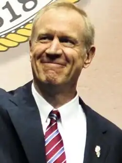 During the 2018 Illinois Elections, Rauner lost to J. B. Pritzker in a landslide with the party also losing two congressional seats (Roskam and Hultgren) and becoming a superminority in the state legislature.