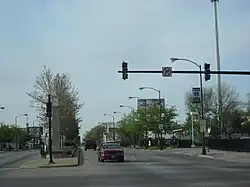 As IL 1 continues north, it has a junction with Lincoln Highway (US 30) in Chicago Heights. This is sometimes known as the "Crossroads of the Nation", because it is the intersection of two major auto trails.[9] This intersection helped cities such as Chicago Heights thrive in its early days. Approximately two blocks after this intersection, Dixie Highway splits from Chicago Road and continues north through Flossmoor and Homewood. At the north end of Homewood's downtown, the road turns and goes under the Illinois Central Railroad tracks, which now carries both the Metra Electric Line and Amtrak trains. The road continues north through East Hazel Crest and past the Markham Rail Yards and under the Tri-State Tollway.