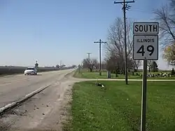 Illinois 49 runs for its length entirely as an undivided surface highway. It serves minor cities between Illinois Route 1 to the east and Interstate 57 to the west.