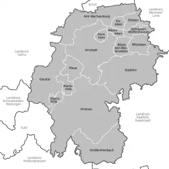 Ilm-Kreis is a district in Thuringia, Germany. It is bounded by (from the north and clockwise) the city of Erfurt, the districts of Weimarer Land, Saalfeld-Rudolstadt and Hildburghausen, the city of Suhl, and the districts of Schmalkalden-Meiningen and Gotha. It is named after the river Ilm, flowing through the district.