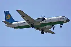 The Ilyushin Il-114 (Russian Илью́шин Ил-114) is a Russian twin-engine turboprop airliner, designed for regional routes. First flown in 1990, it was intended to replace the Antonov An-24. A total of 20 Il-114s have been built.[5]