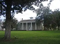 Near the turn of the 20th century, Hogg's father began speculating in oil. He purchased 4,100 acres (17 km2) of land near West Columbia in 1901, land that had been part of the Varner plantation.[41] After two years of study in New York City, Ima Hogg returned to Texas, dividing her time between the plantation and Houston, where her father had a law practice.[42] Under her supervision, the house was later remodeled and a portico was added to what had been the back of the house; she made this the new front entrance, orienting the house away from Varner Creek.[43]