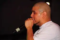 After being paroled, he took political science classes at Baruch College in New York City for two semesters at the behest of his father, who allowed Coronel to live with him on the condition that he went to school.[12] Honing his rapping skills in jail, and unable to find decent wage-paying employment after his release, he began selling his music on the streets of New York and battling with other MCs.[13][14][15] This, coupled with his victories in underground freestyle rap competitions led to his reputation as a ferocious battle MC.[16]