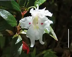 | Flower of Impatiens serusiauxii; scale bar = 1 cm | |