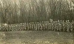 After the mobilizations in the spring of 1905, by the summer the Russian army in the Far East grew to a strength of almost one million well-equipped and -trained soldiers facing an exhausted Japanese army, but the Russian naval defeat at the Battle of Tsushima made peace talks more desirable. The first reservists to be mobilized were older men with minimal training, some of whom had never held a Mosin-Nagant rifle, while new recruits and younger reservists did not begin arriving until after the Battle of Mukden in February 1905.[31] The mobilization for the Russo-Japanese War also brought large numbers of reservists into the ranks who were more politicized, and began spreading revolutionary ideas among the troops.[32] There were over 400 mutinies from autumn 1905 to summer 1906.[33]
