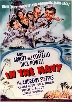 In the Navy is a 1941 American comedy film directed by Arthur Lubin and starring the team of Abbott and Costello alongside Dick Powell, Claire Dodd and The Andrews Sisters. Produced and distributed by Universal Pictures, it was the second service comedy based on the peacetime draft of 1940. The comedy team appeared in two other service comedies in 1941, before the United States entered the war: Buck Privates released in January and Keep 'Em Flying released in November.[4]