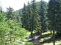Nikolai Yaroshenko painted "In a Warm Land" in Kislovodsk at the White Villa.[16][Note 3][17] He visited Kislovodsk for the first time in 1875.[8] In 1885, Yaroshenko's wife Maria Pavlovna bought a dacha there,[18] but he didn't move there from St. Petersburg until 1892, after resigning from the civil service due to a sharp deterioration in his health.[8] The house in which the artist lived and then settled in Kislovodsk was built on an elevated site, with a view of the Cathedral Square on one side and an orchard on the other. The terrace was painted by the artist himself in the "Pompeian style", where the family usually ate lunch, drank tea and spent much of their free time in the summer. From the terrace there was a beautiful view of the Sosnovka mountain. It was here that the picture "In a Warm Land" was painted.[19] In the house there were held evenings for the friends of the Yaroshenko family, on the terrace artists, singers and musicians demonstrated their art to the guests, the wedding of the daughter of the artist Mikhail Nesterov, Olga, took place there. One of the small rooms of the house, which had a wide window, the artist equipped as a workshop.[20]