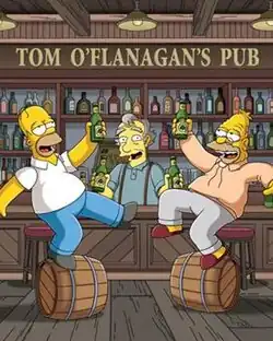 ![]() The promotional image for the episode: Homer and Grampa on a drinking binge in O'Flanagan's Pub in Ireland. | |